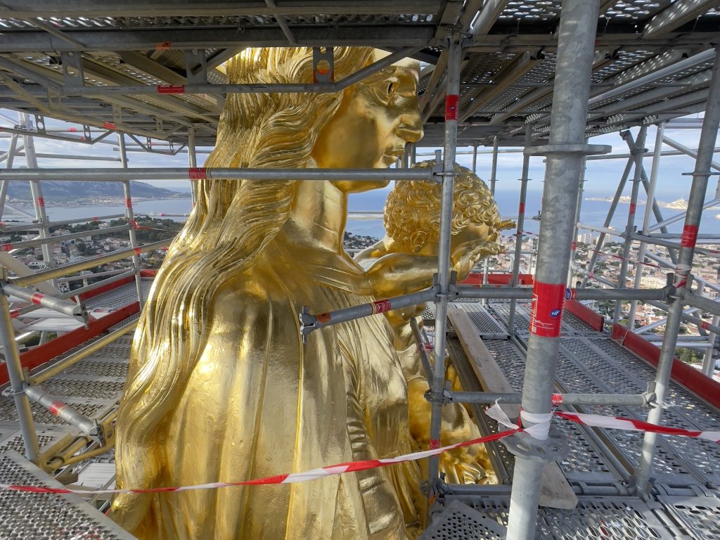 En 2025, la statue monumentale de la Vierge a fait l’objet d’une rénovation historique, la plus importante depuis plusieurs décennies. Cette intervention exceptionnelle a permis la redorure complète de la statue avec 27 000 feuilles d’or de 23,5 carats, couvrant plus de 100 m², afin de lui redonner tout son éclat et d’assurer sa conservation durable.